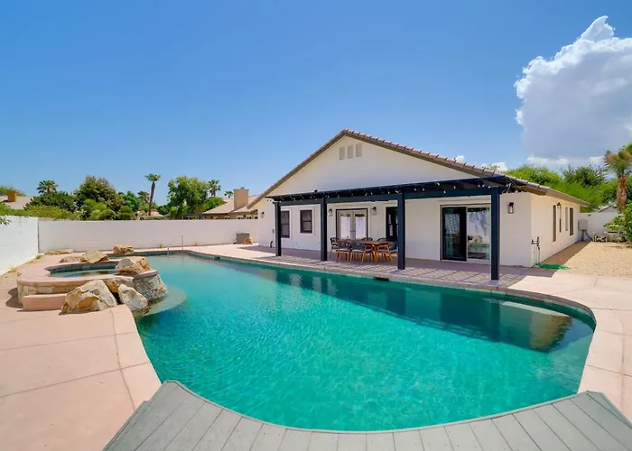 Gäste können ihre Mahlzeiten in einer kompletten Küche zubereiten sowie in einem Essbereich im Freien speisen. Die Küche bietet auch eine Mikrowelle, eine Kaffee-/Teemaschine und einen Kühlschrank. Das Restaurant Baskin-Robbins liegt rund 20 Minuten zu Fuß von der Unterkunft entfernt. Die Entfernung zum Flughafen Palm Springs beträgt etwa 30 km. Diese Villa verfügt über eine sonnige Terrasse, wo Sie sich nach einem anstrengenden Tag entspannen können, sowie über einen Swimmingpool. Spielsachen und Brettspiele, die es dieser Villa bieten unbegrenzten Spaß für Kinder.